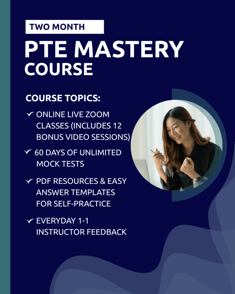Fast-paced course designed for students aiming to achieve their PTE goals quickly. It focuses on key strategies, practice tests, and personalized feedback to boost performance effectively.