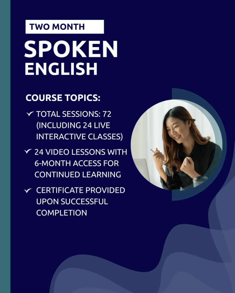 An intensive course crafted for beginners who want to improve their English speaking skills confidently and quickly. The program includes interactive live sessions and practice-based learning.